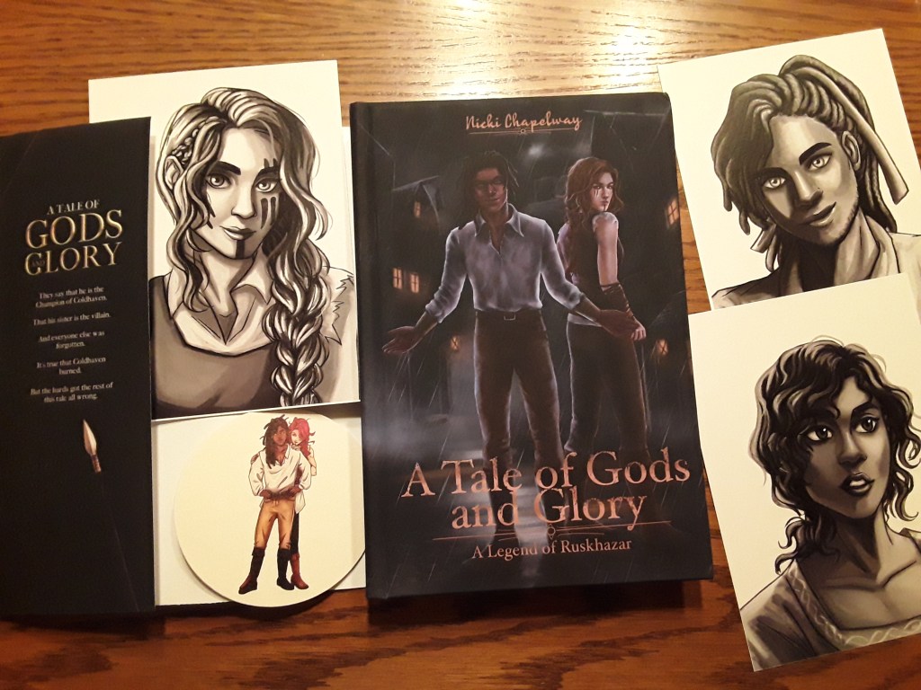 Slightly Damaged Copies of the hardcover edition of A Tale of Gods and Glory. Signed with a coaster and three black and white art prints. Free shipping included within the continental United States.
